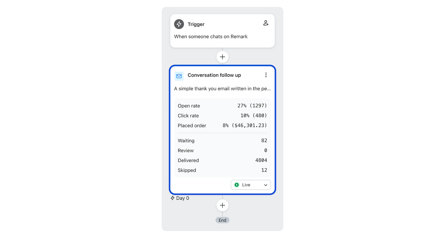 Bring Klaviyo engagement data back into Remark to see how shoppers interact with your emails, including opens, clicks, and more, all in one place.