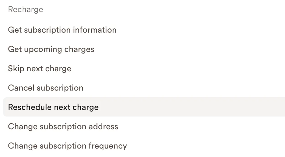Subscribers can skip shipments, reschedule deliveries, swap products, adjust quantities, and update billing or shipping details instantly — all through a natural chat experience fully synced with Recharge.